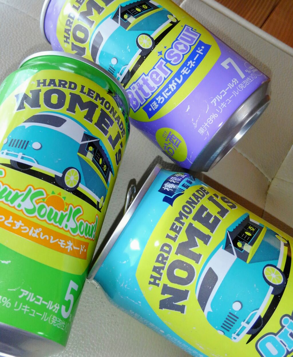 2021-07-28 ポップな容器 のんべえ アルコールの缶が並ぶ棚に w(゚o゚)w オオー! アメリカンポップなイラストの缶!!!!イラストと共に、爽やかなカラーが心惹かれる。(o^∇^o)ノ 当然3種類を購入。流石に、一気に開けて飲み比べはしなかった。淡いパープル色のほろにがレモネードが7%のアルコール度数。他二つは5%。イメージ通りの柑橘系の香りが高く、それぞれの特徴が楽しい!酸味が、思いのほか強いので、疲れが癒される感じ。飲み比べるしかないかな?ヾ(=^▽^=)ノ